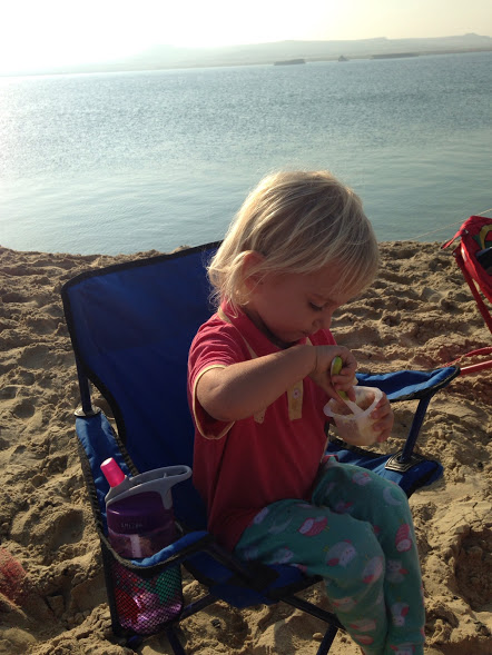 Ráno jsme vstávali snad mezi posledními! Dětičky vychrupovaly nejmíň do půl osmé, kdy už sluníčko stálo vysoko na obloze a stan se rychle vyhříval. V noci mohlo být kole 22 stupňů, ale ráno to ke 30ce ve stínu vyleze ještě poměrně rychle.