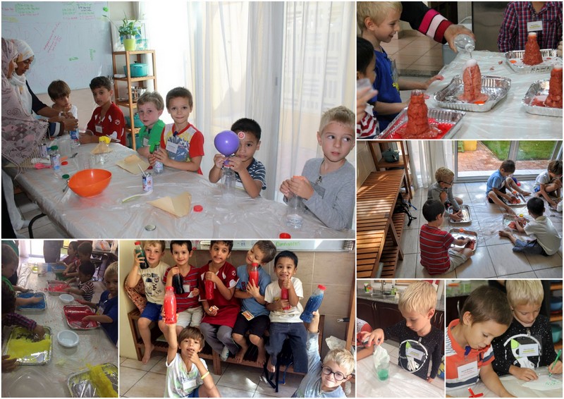 Jako druhý kurz měl Science in the Kitchen, ve kterém dělali různé experimenty z obvykle doma dostupných surovin. Lava lampy, sopky, domácí zmrzku, saláty, slizy :-D, experimenty se sodou a octem – tyhlety věci, špinaví a barevní až za ušima. Já jsem tam s ním nebyla, takže si musel už kompletně poradit sám. A spokojenost veliká.