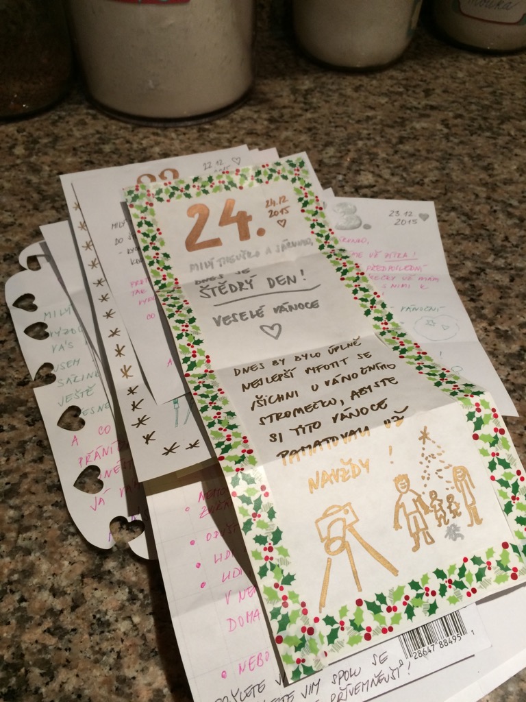 Letos nám dává kalendář trochu na zadek. Možná je to tím, že nejsem originální a nedaří se mi přesvědčit se, že to nevadí, protože salát je taky každý rok stejný, ale dovednosti dětí jsou někde úplně jinde než loni (a předloni). Nebo tím, že máme tuto zimu nějak hodně aktivit, takže nestíháme být tolik doma a tvořit! Anebo je to tím, že jsou prostě dva a někdy lítá kokos z kuchyně až do ložnice :-D?