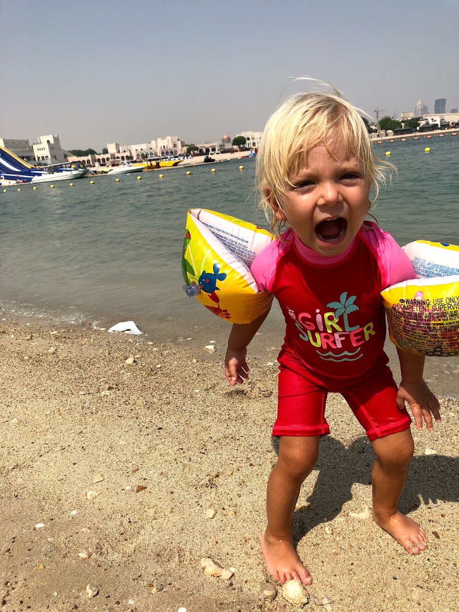 Ani u kojení si nedala na ruku moc sáhnout, vždycky se odcucla a znovu rozplakala… Až po chvíli mi dovolila předloktím hnout, trošku jsem ho zmáčkla, pootočila do strany (jestli to jakože jde), když v tom zalupalo… a bylo po pláči. Ruka šla za chvíli do provozu a cesta na pohotovost byla odložena na později. Což už nebylo nakonec nějak potřeba. Tak asi měla něco vykloubené, chůdě? To bychom měli další poprvé…