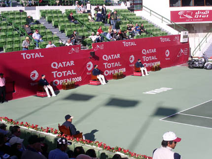 Tento týden probíhá v Doze každoroční zastávka turnaje WTA Tour, Qatar Total Open 2008 – čili pro netenisavce tenis v sukních. Byli jsme to včera okouknout – navíc, když se na kurtech vystřídá 8 hráček z elitní desítky!