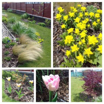 První jaro naší zahrady. Rostliny už jsou tu doma a mohou konečně ukázat, co v nich je :). Lenka zvertikulovala trávník, zahradník napustil závlahu a vyměnil muchovník, který zahubil loňský tropický červen (anebo předimenzovaná zakládací závlaha – babo raď) a už i ptáci se na tu krásu slétávají, jak kdyby je sám Hitchcock poslal, vše pučí a zelená. Radost pohledět!